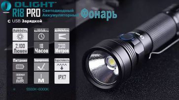 - Olight Ручной, аккумуляторный, светодиодный, карманный фонарь — Olight R18 PRO по выгодной цене 5 000 р. руб.;