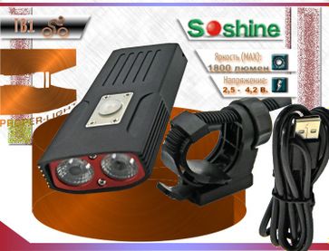 - Soshine Велосипедный фонарь Soshine TB1 — Аккумуляторный моноблок с зарядкой от USB в каталоге Фонари налобные светодиодные в Москве;