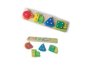 Обучающая пространственная игра для малышей от 18ти месяцев. Игрушка выполнена с отличным качеством из дерева, которое приятно держать в детской ручке и играть с ним. Игра не только развлекает малыша, но и вырабатывает ловкость и точность рук, сноровку и координацию движений, развивает мелкую и крупную моторику пальцев рук, а так же стимулирует развитие умственных и логических способностей у детей, фантазию, развивает память малыша. В игре дети учатся находить соответствия по общим признакам предметов: форме, размеру, цвету. В комплекте: