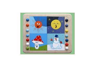 Для детей от 2 лет. Мозаика-пазл состоит из 16 элементов. Данная мозаика представлянт собой несложный набор элементов, в сумме изображающих различные природные явления. Ценность данной мозаики заключена в том, что помимо четырех художественных картинок, в композицию включены четыре планки которые располагаются по сторонам, на планках изображены четыре цвета которые используются в какой-либо из картинок, соответственно задача ребенка расположить планочки в соответствии с её картинкой. Данный приём позволяет не просто запоминать цвета, но и видеть конкретное применение данного цвета в окружающей нас среде. Игра - это отличное пособие для развития моторики и мышления. Качественная и доступная развивающая игрушка для детей. Качество и оригинальность игрушек фирмы неоднократно отмечалось на региональных и общероссийских выставках и конкурсах. Роспись ручная, краски на водной основе. Материал: высококачественное дерево. КРОНА, производство Россия.