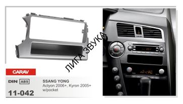 CARAV 11-0421-DIN переходная рамка для а/м SSANG YONG Actyon 2006+, Kyron 2005+ (с карманом)Переходная рамка предназначена для установки автомагнитолы стандартного размера 1-DIN вместо штатного головного устройства. Цвет и текстура пластика рамки 100% повторяют интерьер торпедо автомобиля. В комплекте имеется вся необходимая для монтажа фурнитура. None Возможен самовывоз. Есть доставка.