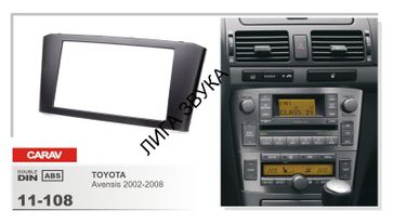 CARAV 11-1082-DIN переходная рамка для а/м TOYOTA Avensis 2002-2008Переходная рамка предназначена для установки автомагнитолы стандартного размера 2-DIN вместо штатного головного устройства. Цвет и текстура пластика рамки 100% повторяют интерьер торпедо автомобиля. В комплекте имеется вся необходимая для монтажа фурнитура. None Возможен самовывоз. Есть доставка.