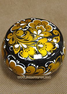 Закажите Шкатулка круглая "Малая". Хохлома. арт. 3266 у компании Гжель, гжельский фарфор, интернет – магазин подарков и сувениров. в Москве на портале Alloy: