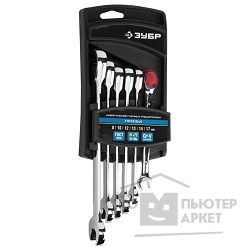 Зубр Набор "ПРОФИ": Ключ гаечный комбинированный трещоточный, Cr-V сталь, хромированный, 8-17мм, 6шт 27074-H6