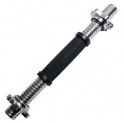 DFC RB14TR-30 Гриф гантельный Технические характеристики: . Материал: хромированная сталь . Ручка: обрезиненная . Замок: фигурная гайка . Втулка: с резьбой . Длина общая: 350 мм . Длина посадочного места: 105 мм . Диаметр посадочный: 30 мм . Длина хвата: 140 мм . Нескользящие насечки для прочного хвата . Артикул: RB14TR-30 . Гарантия: 1 год . Торговая марка: Россия . Страна изготовления: Китай . Максимальная нагрузка: 10-15 кг . Вес грифа: 2,25 кг Описание: DFC RB14TR-30 - гриф гантельный весом 2,25 килограмма, диаметром 30 миллиметров и длиной 35 сантиметров с обрезиненной ручкой предназначен для дисков с внутренним диаметром 31 миллиметр. С его помощью можно выполнять большое количество упражнений на тренировку мышц рук и груди. Прочная хромированная сталь грифа обеспечивает выполнение упражнений с максимальной нагрузкой. Надежные замки в виде фигурных гаек прочно фиксируют диски на грифе. Обрезиненная ручка с нескользящими насечками для прочного хвата исключает соскальзывание рук, делая тренировку комфортной и безопасной. Для эффективных тренировок и возможности комбинировать нагрузку рекомендуем дополнительно приобрести диски различного веса с внутренним диаметром 31 миллиметр. Интернет магазин SportLife предлагает низкую цену приобретения гантельного грифа с обрезиненной ручкой DFC RB14TR-30 с быстрой доставкой по Москве и России. None Есть доставка. Доставка: 500.0RUR