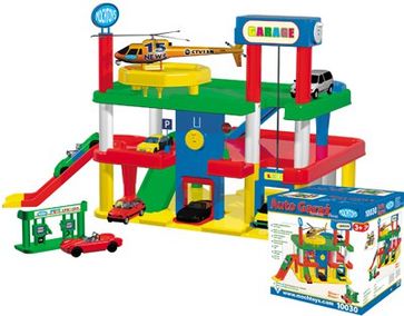Трехуровневая парковка для игры от 3х лет. Любая игра с такой замечательной многоуровневой парковкой превратится в настоящее приключение! Подъемник доставит машину на любой уровень! Водитель сможет не только помыть и заправить свой автомобиль, но и пройдет диагностику или ремонт. Етсь даже вертолетная площадка! В комплекте: