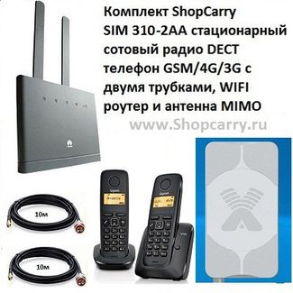 - Комплект ShopCarry SIM 310-2AA стационарный сотовый радио DECT телефон с двумя трубками GSM 4G 3G WIFI роутер и антенна MIMO по выгодной цене 14 790 р. руб.;