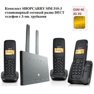 - Комплект SHOPCARRY SIM 310-3 стационарный сотовый радио DECT телефон с 3-мя. трубками GSM 4G 3G WIFI и роутер универсальный по выгодной цене 11 470 р. руб.;