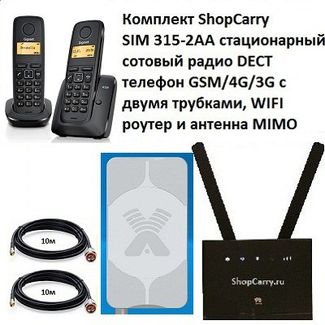 - Комплект ShopCarry SIM 315-2AA стационарный сотовый радио DECT телефон с двумя трубками GSM 4G 3G WIFI роутер и антенна MIMO по выгодной цене 15 690 р. руб.;