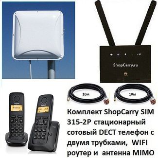 - Комплект ShopCarry SIM 315-2P стационарный сотовый радио DECT телефон с двумя трубками GSM 4G 3G WIFI роутер и антенна MIMO по выгодной цене 15 240 р. руб.;