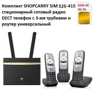 - Комплект SHOPCARRY SIM 525-415 стационарный сотовый радио DECT телефон с 3-мя трубками GSM 4G 3G WIFI и роутер универсальный по выгодной цене 15 190 р. руб.;