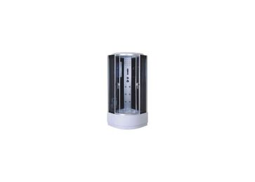 Душевая кабина Serena EW-32013 G с гидромассажем Полукруг, гидромассаж ступней ног, высокий поддон, ударопрочное тонированное стекло, смеситель, душевой гарнитур в комплекте, 6 форсунок спинного гидромассажа, крыша, радио, свет, вытяжка, габариты 9090215 см None