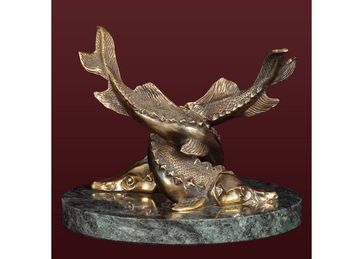 ОсетрыНа камне Материал: БронзаДлина: 180 ммШирина: 140 ммВысота: 140 ммВес: 1000 гр None