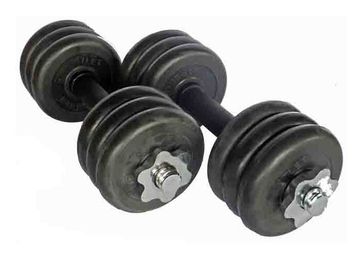 Вес: 2х10кг Тип: разборные Уровень: для дома и фитнеса Материал: металл Ручка: хромированные диски: обрезиненные Комплектация Гриф гантельный 36см.- 2шт. Диск обрезиненный д. 26 мм. 12,5кг.-12шт.; None