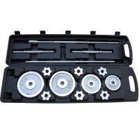 Набор с хромироваными дисками 50кг Комплект - штанга и 2 гантели В пластиковом чемодане Разборный гриф штанги - 1550мм 2 гантельных грифа Диски - 1,0кг - 4шт, 2,5кг - 6шт, 5кг - 4шт None