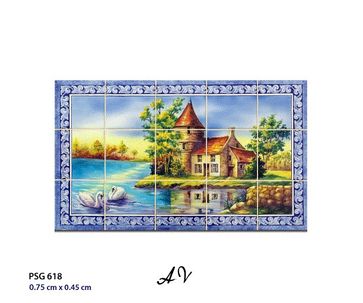 - керамическое панно-PSG-618 лебеди в реке у дома по выгодной цене 390 р. руб.;