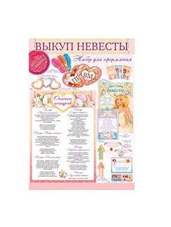 Набор для оформления "Выкуп невесты" (GKOP 69.209) STA840 Готовый набор для проведения церемонии выкупа невесты со сценарием, описаниями конкурсов. Такие наборы помогают провести конкурсы четко, быстро, без заминок и перерывов, чтобы гости не скучали, а были постоянно вовлечены в веселый шуточный процесс. В набор входят: конкурсы "Вспомни дату", "Причины женитьбы", "Найди любимую", "Свадебная медкомиссия", "Сладкие обещания". Мин. заказ 500 руб.
