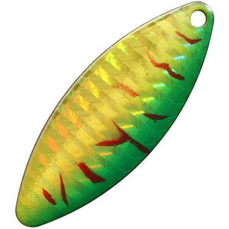 Вращающиеся блесны с лепестками в форме вытянутого листка березы. Характер такой формы заставляет лепесток работать близи корпуса, образуя угол вращения около 30 градусов. Блесна, буксируемая в толще воды напоминает тонких рыбок, или продолговатых насекомых. Такая форма лепестков позволяет удачно буксировать блесну у дна более глубокого водоема. В реках результат получается лучше, когда блесна буксируется против течения. None