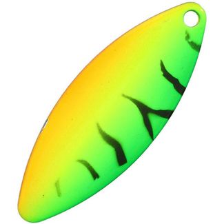 Вращающиеся блесны с лепестками в форме вытянутого листка березы. Характер такой формы заставляет лепесток работать близи корпуса, образуя угол вращения около 30 градусов. Блесна, буксируемая в толще воды напоминает тонких рыбок, или продолговатых насекомых. Такая форма лепестков позволяет удачно буксировать блесну у дна более глубокого водоема. В реках результат получается лучше, когда блесна буксируется против течения. None