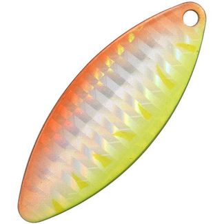 Вращающиеся блесны с лепестками в форме вытянутого листка березы. Характер такой формы заставляет лепесток работать близи корпуса, образуя угол вращения около 30 градусов. Блесна, буксируемая в толще воды напоминает тонких рыбок, или продолговатых насекомых. Такая форма лепестков позволяет удачно буксировать блесну у дна более глубокого водоема. В реках результат получается лучше, когда блесна буксируется против течения. None