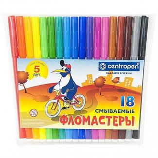 - Фломастеры CENTROPEN, "Пингвины", смываемые, 18 цветов по выгодной цене 170 р. руб.;