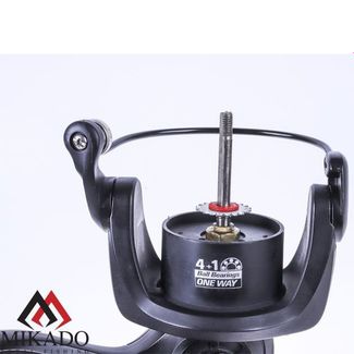 Катушка для фидерной и карповой ловли с системой бэйтраннер. Самая бюджетная модель Mikado с металлической шпулей и мгновенным антиреверсом. Графитовый корпус с минималистичным дизайном. Переключатель хода находится под корпусом. Сбалансированный ротор. Полая дужка лескоукладывателя; ролик на подшипнике скольжения. Флажок бэйтраннера включается нажатием (в отличие от подъема на большинстве моделей). Это упрощает его отключение при подсечке. Передний фрикционный тормоз. В комплекте 1 алюминиевая и одна пластиковая шпули. Переставляемая рукоять с резиновой ручкой. None