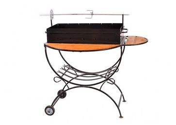 На колесиках с деревянным столиком, Размеры мангала: 94х60х85 см, Топка (ДхШхГ): 69х35х15 см толщина 2 мм, Вес: 25 кг. None Есть доставка.