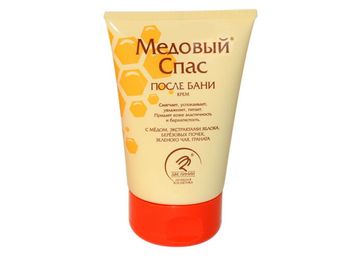 Крем после бани "Медовый спас" с медом, экстрактами яблока, березовых почек, зеленого чая, граната. Он смягчает, успокаивает, обеспечивает глубокое увлажнение и питание кожи. Легко впитывается, придавая коже эластичность и бархатистость. В зе ... None