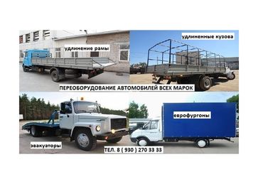 АТЦ производит удлинение рамы и кузова ГАЗ 3302, ГАЗ 33023, ГАЗ 3307, ГАЗ 3308, ГАЗ 33081, ГАЗ 3309 , Валдай и автомобилей марки Hyundai , ТАТА, ISUZU. Удлинение рамы подразумевает так же установку многих видов надстроек удлиненный кузов, еврокузов , европлатформа ( тент каркас распашные ворота ), автофургон, борт , эвакуаторная платформа и др. Удлинение ТАТЫ и исузу. Удлиняем HD 72 и 78.