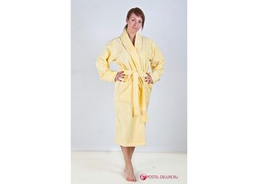 Артикул: slLT006 Производитель: SoftLine Страна производства: Китай Халат банный 48 р. Хлопок 100%. Велюр. Жаккард средней длины с шалькой (кимоно).