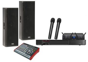 - Караоке - комплект для дома AST-250 с микрофонами Audio-Technica ATW-1322, микшером, колонками QSC KW153 по выгодной цене 604 000 р. руб.;