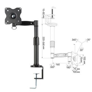 Кронштейн для монитора KROMAX OFFICE-1 - идеальное решение для дома и офиса. Телескопическая стойка, сферический шарнир монтажной пластины и держатели проводов обеспечивают кронштейну абсолютную свободу регулировки.Конструкция кронштейна для монитора Kromax OFFICE-1 дает возможность изменять положение монитора минимальным усилием руки. Монитор можно поворачивать, наклонять и вращать практически в любую сторону. Кронштейн также дает возможность настроить положение монитора по высоте. Гибкие настройки кронштейна для монитора дают возможность максимально комфортно устроить свое рабочее место. Кронштейн для монитора крепится за край рабочего стола с помощью мощной струбцины. Высота кронштейна настраивается с помощью телескопической штанги (от 220-368 мм). Для экрана 13-24 дюймов максимальная нагрузка -10 кг. Кронштейн дает возможность работать перед монитором как в обычном, так и в "портретном" режиме. None