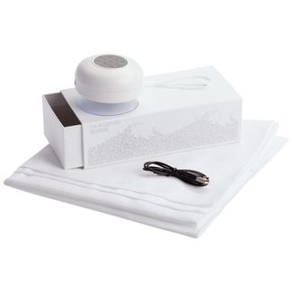 <p>В набор входит:</p> <ul class="list"> <li>Bluetooth колонка <a href="https://www.lovepresent.ru/besprovodnaya-bluetooth-kolonka-stuckspeaker">stuckSpeaker</a>, белая</li> <li>Полотенце Atoll Medium, белое</li> </ul> <p>Материал: колонка - пластик, покрытие софт-тач; полотенце - микрофибра, полиэстер<br /><br />Размер: 20,5х10х6,3 см<br /><br />Вес (грамм): 347.22</p> Наличные, безнал., карты, эл. деньги, юр. лица Возможен самовывоз. Есть доставка.
