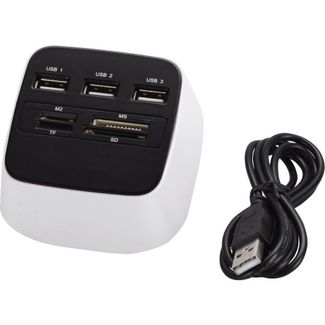 <p>Отличный, а главное полезный подарок для компьютерных гениев.</p> <p>Разветвитель рассчитан на 3 USB порта и картридер.</p> <p>Вес с упаковкой: 145 г.<br /><br />Цвет: белый/черный <br /><br />Размер товара: 80 х 80 х 40 мм.<br /><br />Материал: пластик <br /><br /></p> Наличные, безнал., карты, эл. деньги, юр. лица Возможен самовывоз. Есть доставка.