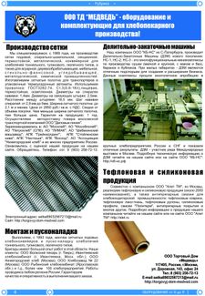 - Мы специализируемся, с 1989 года, на производстве сетки подовой, спирально-шомпольной, секционной, термостойкой, металлической, конвейерной для хлебопечей тоннельного, тупикового, люлечного типов, а также для аграрной, деревообрабатывающей, мебельной, стекольно-фаянсовой, угледобывающей, металлургической, химической промышленностей. Изготавливаем сетчатые полотна для транспортеров в упаковочные термоусадочные автоматы. Используемая проволока: ГОСТ3282-74, Ст.3(0,8-1Кп), пищевая, термостойкая, осветленная. Диаметры на спиралях навивки: 1,4мм. Диаметры на связующих штырях: 2,5мм. Расстояние между штырями: 16,5 мм. Шаг навивки спиралей: от 2,9 мм до 5 мм. Ширина сетчатого полотна: до 2,1 м и менее. Цена от 3300 руб./ кв.м. с НДС. Чем меньше ширина сетчатого полотна, тем больше цена. Гарантия на продукцию: 1 год. Осуществляем автодоставку товара московской транспортной компанией ООО "Деловые линии". Зарекомендовались в: "Мосхлеб"; "Мособлхлеб"; "Петрохлеб" (СПб); АО "ЛИМАК"; АО "Шебекинский машзавод"; АПК "Грейнхолдинг"; АПК "Стойленская нива"; АПК "Настюша" и во многих предприятиях России. Ознакомьтесь с оценкой нашей продукции на нашем сайте. Обращайтесь. Телефон: сот. 8 (903) 256-72-13; Сайт: http://torgovyj-dom-medved.com ** Выполняем, с 1993 года, монтаж сетчатых подовых хлебоконвейеров и <