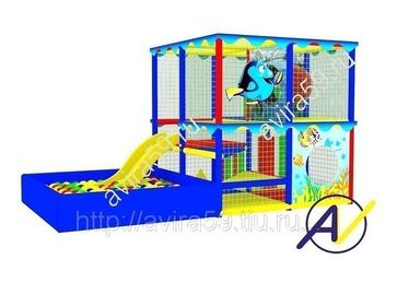 Подводный мир – игра и сказка. Детям захочется стать ее героями: переплыть по трубе для лазанья, скатиться с горки и попасть в сухой бассейн, узнать свои силы на тренажере «Пройди и не упади» и вновь вернуться в этот веселый аттракцион! Такой лабиринт прекрасно подойдет для небольших помещений финтес-клубов, кафе, ресторанов.