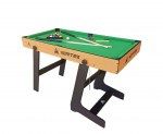 DFC Vortex Бильярд складной Технические характеристики: . Количество игроков: 2 . Материал: МДФ . Бильярд является отличным развлечением дома или на даче . Игровой стол будет не только отличной покупкой для себя, но и прекрасным подарком . Складная конструкция . Диаметр шара: 38 мм . Длина кия: 91 см . В комплекте: 2 кия, набор шаров . Артикул: SB-BT-02LSVT . Гарантия: 12 месяцев . Торговая марка: Россия . Страна изготовления: Китай Размеры и вес в упаковке: 130 х 65 х 15 см / 20 кг Размер игрового поля (Д.Ш.): 115 х 55 см Толщина игрового поля: 4,75 мм Размеры (Д.Ш.В.): 122 x 61 x 76 см Вес: 15 кг Описание: Бильярд складной DFC Vortex это азарт и увлекательная игра в любой момент с семьёй, друзьями и гостями! Стол DFC Vortex с классической расцветкой впишется в любой интерьер, понравится и детям, и взрослым: веселье гарантировано всем членам семьи! Игровое поле выполнено из высококачественного МДФ толщиной 4,75 миллиметра. Высота боковых стенок, ламинированных ПВХ, 10 сантиметров, толщина 12 миллиметров. Игровое поле установлено на ножки из МДФ, ламинированного чёрным ПВХ, толщиной 15 миллиметров. Конструкция укреплена перекладиной из МДФ толщиной 12 миллиметров. После игры стол легко складывается: его можно убрать к стене или в кладовую, где он займёт минимум пространства. Стол поставляется с комплектом из 2-х киев, комплектом шаров, треугольника, щетки и 2-х мелков. Деревянный кий длиной 91 сантиметр. Шары для игры диаметром 38 миллиметров изготовлены из смолы. Заказывайте в интернет магазине SportLife по доступной цене бильярд складной DFC Vortex и мы доставим заказ в любой город России. None Есть доставка.