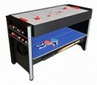 Weekend Global Игровой стол многофункциональный 3 в 1 Технические характеристики: . Количество игроков: 2 . Материал: пластик, дерево, ЛДСП . Игры: аэрохоккей, настольный теннис, бильярд . Комплектация: - аэрохоккей: 2 биты, 2 шайбы - настольный теннис: 2 ракетки, 2 мяча, сетка, 2 стойки для сетки - бильярд: треугольник, 16 шт. бильярдных шаров диаметром 38 мм, мел, 2 кия, щетка . Артикул: 53.003.04.0 . Торговая марка: Россия . Страна изготовитель: Китай Размеры и вес в упаковке: 127 x 69 x 15 см / 34 кг Размеры (Д.Ш.В.): 120 х 61 х 78 см Вес: 30 кг Описание: Игровой стол Weekend Global - это стол для всей семьи. Это многофункциональный стол 3 в 1 Global: аэрохоккей, настольный теннис и бильярд. Он одинаково понравится как детям, так и взрослым, став центром домашней игровой комнаты. Установленный в баре или клубе, этот стол непременно привлечет новых посетителей. Ведь помимо необычного дизайна и отличных игровых качеств у него есть еще одно важное достоинство - постоянная возможность выбора. Вы сможете сыграть в пинг понг, аэрохоккей или попытать счастье в бильярд. Нестандартые мячи в комплекте к теннису сделаны более тяжелыми, для менее резкого и сильного отскока. Такого разнообразия игр в одном флаконе еще не видел рынок развлекательного оборудования! Покупайте многофункциональный игровой стол 3 в 1 Weekend Global по лучшей цене в интернет магазине SportLife и мы привезем его в любую точку России. None Есть доставка.