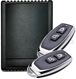 Комплект включает в себя 2-х канальный приёмник чёрного цвета и два миниатюрных передатчика (брелока).