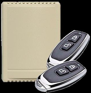 Комплект включает в себя 2-х канальный приёмник бежевого цвета и два миниатюрных передатчика (брелока).