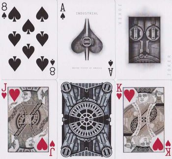 Кто сказал, что карточная колода должна быть строго стандартная, ведь уже при первом взгляде на комплект «Theory11 Deck One» становится понятно – красота не мешает. Этот комплект приехал из США, а его создатель явно является поклонником стимпанка и различных механизмов, о чём свидетельствует замысловатое оформление рубашки. Чтобы ими можно было не только любоваться, но и удобно играть, было решено оставить изображения на лицевой стороне классическими.