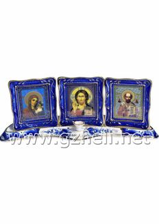 - Набор из Икон с ликами Святых и подсвечником. Гжельский фарфор. арт. 1989 в каталоге Иконы в Москве;