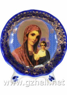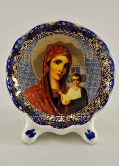 - Плакетка на ножках с ликом «Казанская Божия Матерь». Гжель. арт. 3243 в каталоге Иконы в Москве;