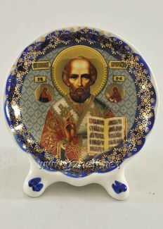 - Плакетка на ножках с ликом "Николай Чудотворец". Гжельский фарфор. арт. 0037 в каталоге Иконы в Москве;
