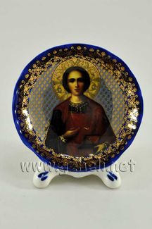 - Плакетка на ножках с ликом "Святой Пантелеймон". Гжельский фарфор. арт. 1571 в каталоге Иконы в Москве;
