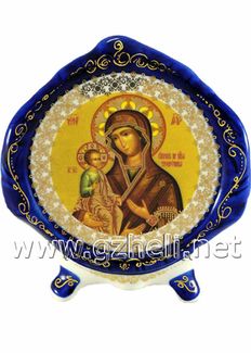 - Тарелка с иконой на ножках "Троеручица". Гжельский фарфор. арт. 1820 в каталоге Иконы в Москве;