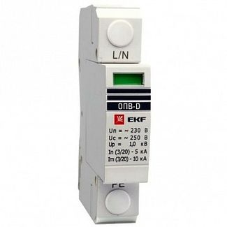 - Ограничитель перенапряжения импульсный Ограничитель импульсных напряжений ОПВ-D 1п 5кА 230В | код. opv-d1 | EKF по выгодной цене 1 112 р. руб.;