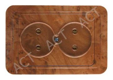 Розетка СВЕТОЗАР "ГАММА" без заземления, двойная, цвет орех, 16А ~250В