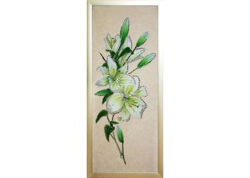 Лилии(Кристаллы Сваровски)Лилии(Кристаллы Сваровски) Используемые кристаллы: ss6, ss8, ss10, ss12, ss16, ss20, ss30. Количество кристаллов:1939 Кристаллы: 2028. Размер картины:30х70. None