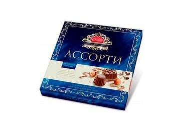 - Конфеты "Ассорти" молочный шоколад 235гр. по выгодной цене 150 р. руб.;